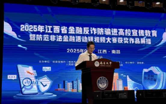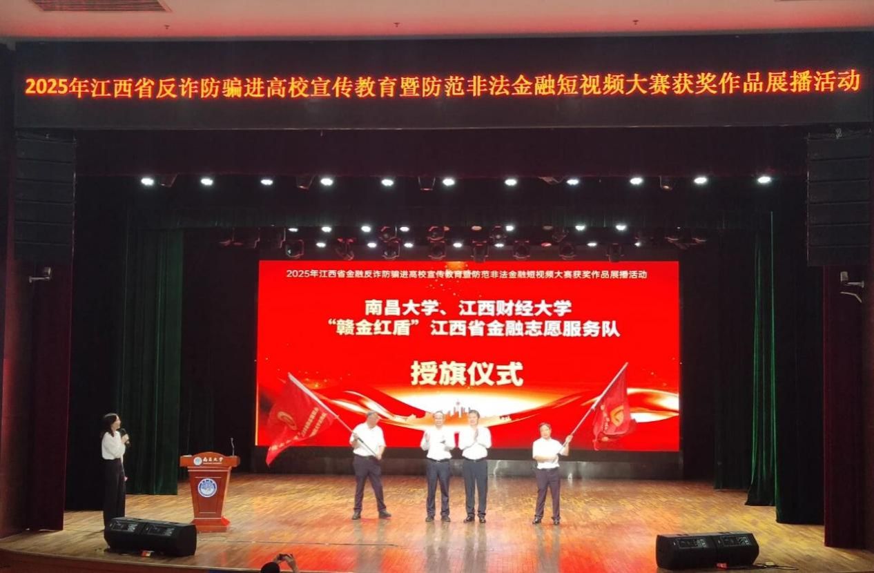 9 月 22 日上午,2025 年江西省金融反诈防骗进高校宣传教育暨防范非法金融活动短视频大赛获奖作品展播活动在南昌大学举行。该活动由省委金融办联合省委教育工委(省教育厅)、省公安厅、团省委、人民银行江西省分行、江西金融监管局、江西证监局共同主办,汇聚 51 所在昌高校代表、金融机构负责人及 “赣金红盾” 金融志愿服务队队员等,通过授旗仪式、作品展演、专家授课等环节,强化高校金融反诈教育,守护校园金融安全。